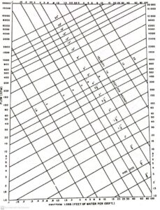 محور بالایی آنها بر اساس مقدار دبی آب مدرج شده که می تواند برای محاسبه قطر لوله های حامل آب سرد(در سرمایش) مورد استفاده قرار گیرد. نمودار های ۳ و ۴ نیز برای سیستم های باز قرار میگیرند.